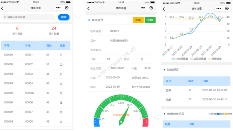 该系统通过数字化管理,实现一牛一码,系统根据日龄自动实现精准饲喂,整个饲喂周期的饲喂量、用奶量以及成本实现数字化,每日、每周、每月的饲喂情况自动生成报表发送到微信小程序端及牧场管理系统,方便牧场的饲养员、兽医、管理人员等均可通过管理系统和手机APP全方面查看犊牛精准饲喂情况、发病情况、生长情况,并且可以同步每位员工每日、每周、每月的工作量、工作内容、喂养量进行全方位管理,从而实现对犊牛的精准饲喂和数据管理,助力广大客户打造数字化智慧牧场。